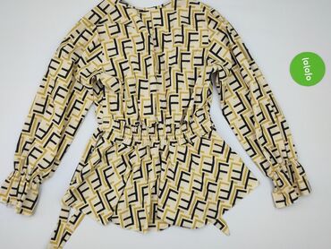 Żółta bluzka damska z lekkiego, zwiewnego materiału - Krój: luźny, asymetryczny dół z nakładającymi się panelami z przodu - Dekolt: głęboki w kształcie litery V - Rękawy: 3/4, lekko rozszerzane - ...