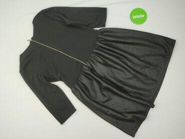 Czarna sukienka ołówkowa z tłoczonym, wypukłym wzorem na całej powierzchni. - Krój: dopasowany, długość mini/tuż przed kolano - Rękaw: 3/4 - Dekolt: łagodnie zaokrąglony - Zapięcie: złoty zamek bł...