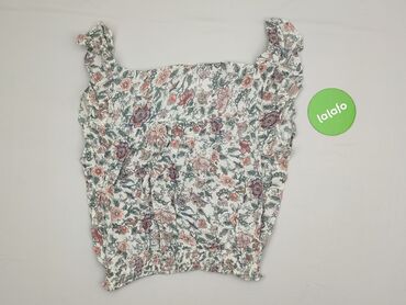 Bluzka damska z wzorem kwiatowym - Krój: prosty, skrócony, z bardzo szerokimi bufiastymi rękawami do łokcia - Dekolt: okrągły - Tkanina: lekko strukturyzowana, cienka, zwiewna - Wzór/kolor: drobne...