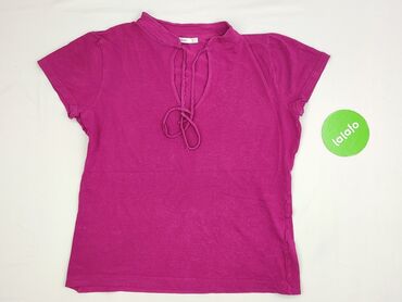 Liliowa bluzka damska Reserved w rozmiarze XS. Bluzka ma krótkie rękawy i okrągły dekolt. Wykonana z materiału z ażurowym wzorem. Idealna na co dzień.