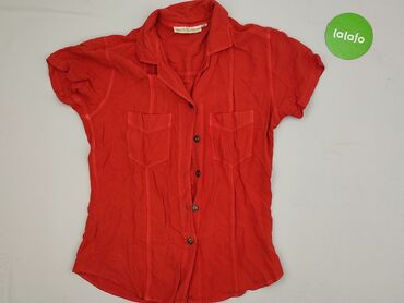 Czerwona koszula damska z krótkim rękawem - Fason luźny, z opuszczoną linią ramion - Zapięcie na guziki z przodu (widoczne 4 guziki) - Klasyczny kołnierzyk - Zaokrąglony dół - Lekka, cienka tkanin...Стан: