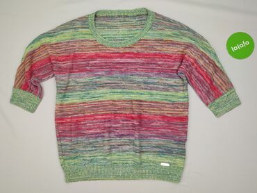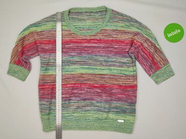 Damski sweter z krótkim rękawem, charakteryzujący się szerokimi poziomymi paskami w pastelowych kolorach, takich jak żółty, błękitny, miętowy, różowy i fioletowy. Sweter ma luźny krój, idealny do s...Стан: