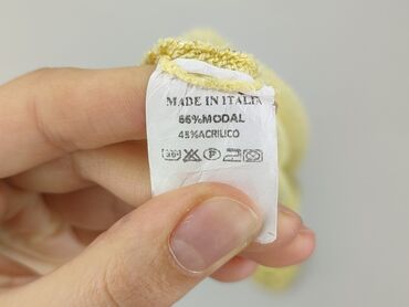 Żółty sweter damski z dekoltem w kształcie litery V, wykonany z modalu i akrylu. Sweter ma luźny krój, szerokie rękawy i ściągacz na dole. Idealny na co dzień, zapewnia komfort i styl. Wyprodukowan...Стан: