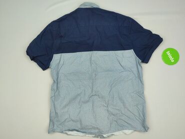 Koszula męska z krótkim rękawem, wzór etno/geometryczny w kolorze granatowo-białym. - Materiał: wiskoza (metka „VISKOSE” widoczna na zdjęciu) – lekka, oddychająca, miękka w dotyku. - Krój: klasycz...