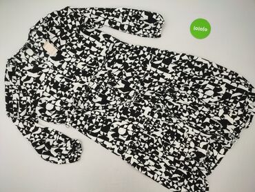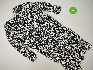 Sukienka damska ESMARA - Fason: ołówkowy, długość za kolano - Kolor/pattern: czarna w biały geometryczny kraciasty wzór - Rękawy: 3/4 z mankietem zapinanym na małe guziki - Dekolt: okrągły, na ram...