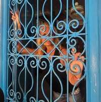 - Wzór: tłoczony/żakardowy motyw róż w intensywnym kobalcie z czernią