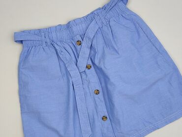 Niebieska spódnica mini z paskiem i guzikami - Krój: prosta mini, lekko rozkloszowana - Kolor: jasny niebieski (błękit) - Zapięcie: rząd dekoracyjnych guzików z przodu - Talia: elastyczna gumka + ...
